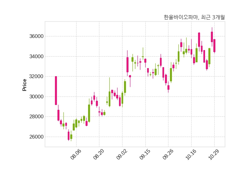 한편, 한올바이오파마의 14시 06분 현재주가는 34,450원으로 직전 거래일 대비 1,000원(-2.82%) 하락이며, 거래량은 254,472주이다.