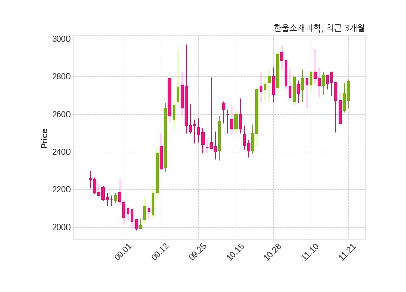 한울소재과학은 특별관계자 루시의 지분율이 15.13%에서 16.44%로 변동했다고 21일 공시했다. 한편, 한울소재과학은 장 마감 이후 해당 기업공시를 발표했으며 오늘 종가가 2,775원, 거래량은 59,417주로, 직전 거래일 대비 65원(+2.4%) 상승했다.