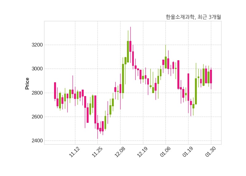 한울소재과학은 특별관계자 루시의 지분율이 15.07%에서 15.13%로 변동했다고 30일 공시했다. 한편, 한울소재과학은 장 마감 이후 해당 기업공시를 발표했으며 오늘 종가가 2,880원, 거래량은 215,622주로, 직전 거래일 대비 95원(-3.19%) 하락했다.