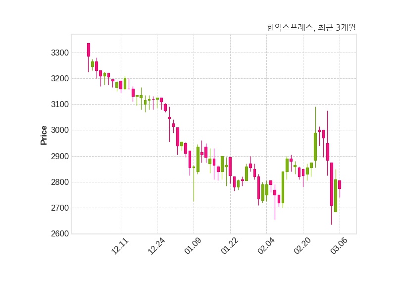 한편, 한익스프레스는 장 마감 이후 해당 기업공시를 발표했으며 오늘 종가가 2,775원, 거래량은 11,139주로, 직전 거래일 대비 35원(-1.25%) 하락했다.