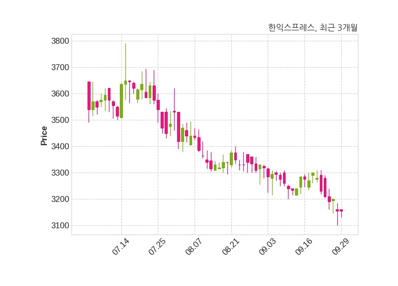 한편, 한익스프레스는 장 마감 이후 해당 기업공시를 발표했으며 오늘 종가가 3,155원, 거래량은 7,587주로, 직전 거래일 대비 변동이없다.