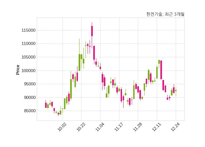 한편, 한전기술의 14시 52분 현재주가는 92,700원으로 직전 거래일 대비 900원(+0.98%) 상승이며, 거래량은 105,913주이다.