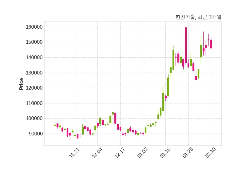 한편, 한전기술은 장 마감 이후 해당 기업공시를 발표했으며 오늘 종가가 146,000원, 거래량은 345,013주로, 직전 거래일 대비 5,700원(-3.76%) 하락했다.