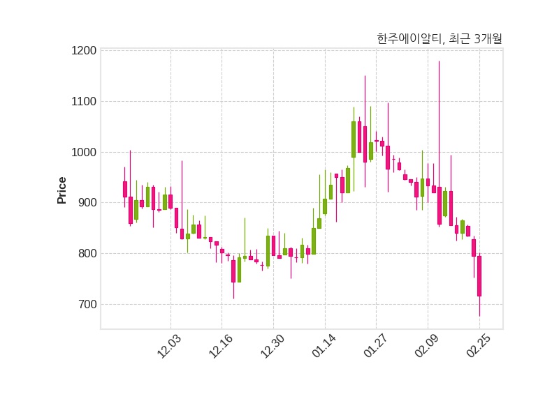한편, 한주에이알티는 장 마감 이후 해당 기업공시를 발표했으며 오늘 종가가 716원, 거래량은 382,164주로, 직전 거래일 대비 78원(-9.82%) 하락했다.