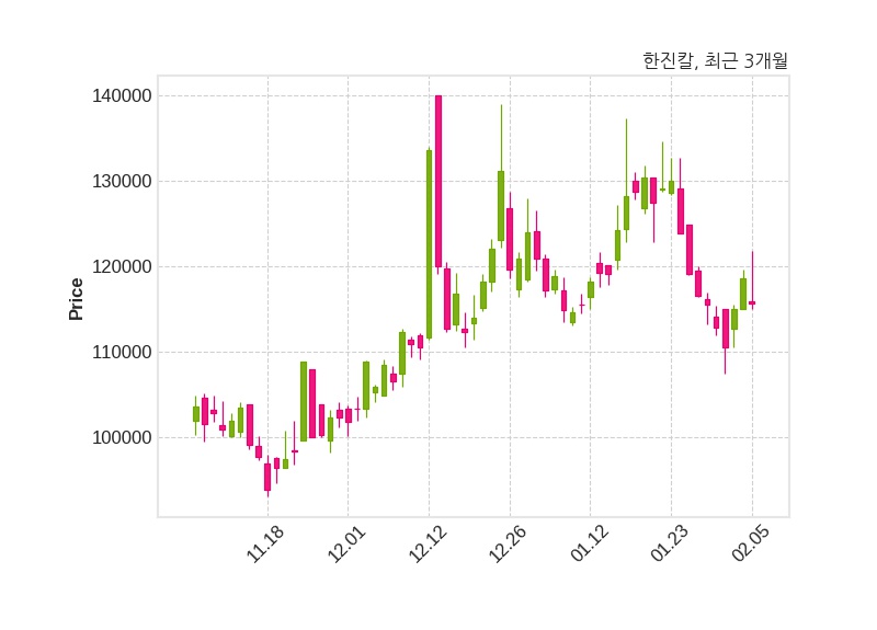 한편, 한진칼은 장 마감 이후 해당 기업공시를 발표했으며 오늘 종가가 115,700원, 거래량은 107,508주로, 직전 거래일 대비 2,900원(-2.45%) 하락했다.