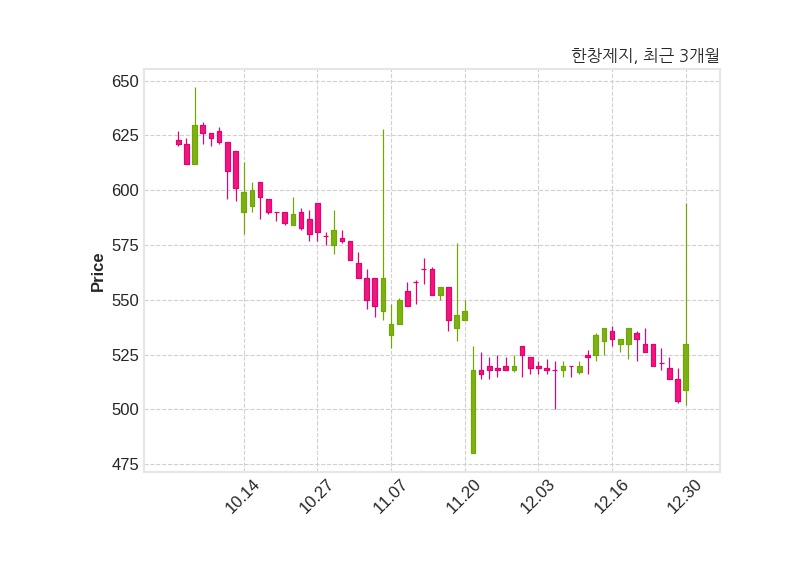 한편, 한창제지의 10시 08분 현재주가는 530원으로 직전 거래일 대비 26원(+5.16%) 상승이며, 거래량은 1,163,422주이다.