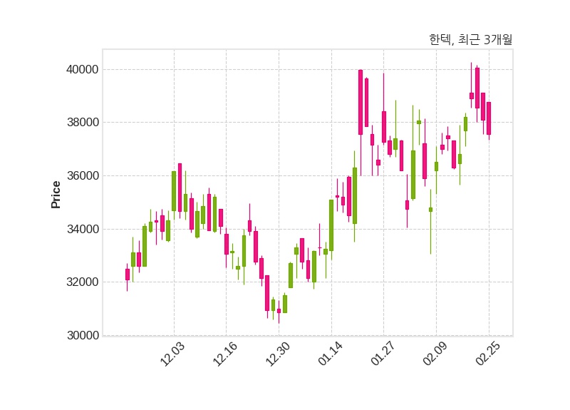 한편, 한텍은 장 마감 이후 해당 기업공시를 발표했으며 오늘 종가가 37,550원, 거래량은 59,430주로, 직전 거래일 대비 550원(-1.44%) 하락했다.