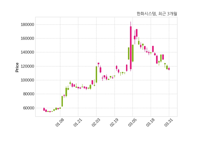 한편, 한화시스템의 14시 18분 현재주가는 115,100원으로 직전 거래일 대비 5,600원(-4.64%) 하락이며, 거래량은 820,676주이다.