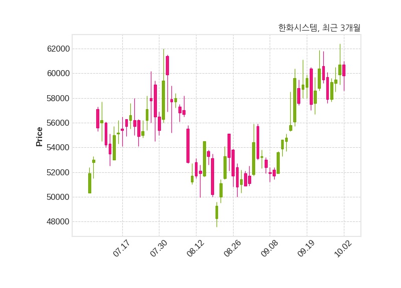 한편, 한화시스템은 장 마감 이후 해당 기업공시를 발표했으며 오늘 종가가 59,800원, 거래량은 1,171,845주로, 직전 거래일 대비 900원(-1.48%) 하락했다.