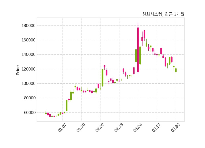 한편, 한화시스템은 장 마감 이후 해당 기업공시를 발표했으며 오늘 종가가 120,700원, 거래량은 821,244주로, 직전 거래일 대비 3,400원(-2.74%) 하락했다.