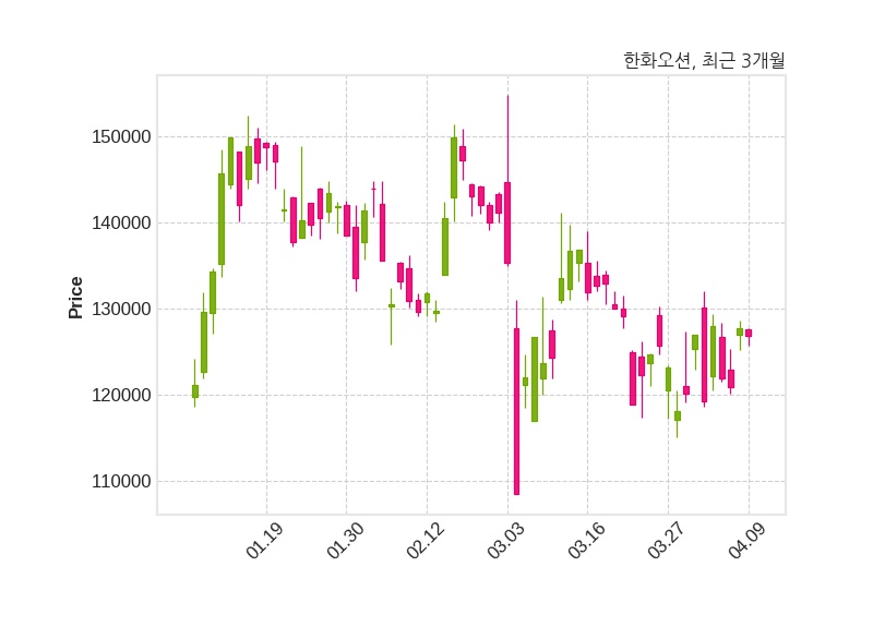 한편, 한화오션의 09시 39분 현재주가는 126,900원으로 직전 거래일 대비 800원(-0.63%) 하락이며, 거래량은 142,148주이다.