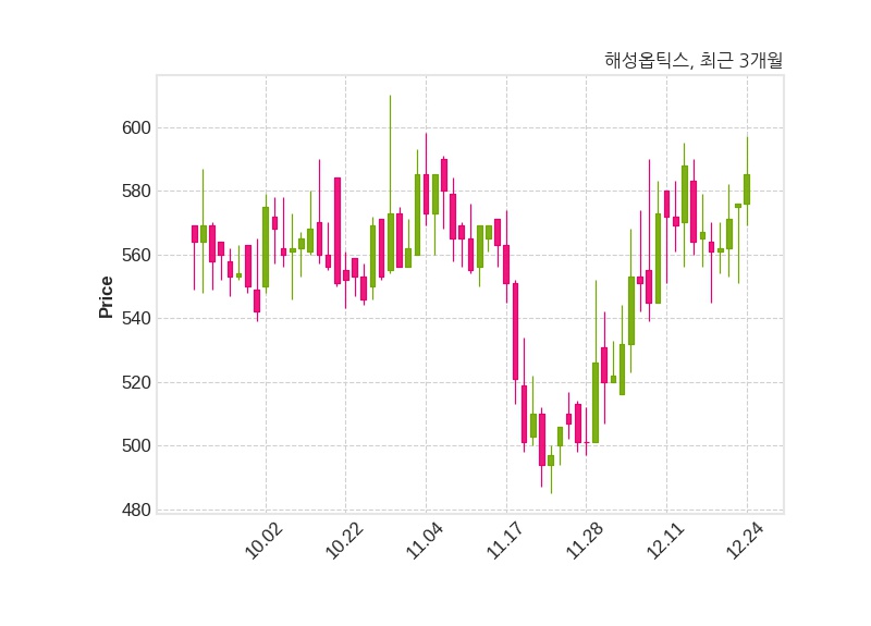 해성옵틱스는 특별관계자 안광호의 지분율이 7.13%에서 6.44%로 변동했다고 24일 공시했다. 한편, 해성옵틱스는 장 마감 이후 해당 기업공시를 발표했으며 오늘 종가가 585원, 거래량은 339,122주로, 직전 거래일 대비 9원(+1.56%) 상승했다.