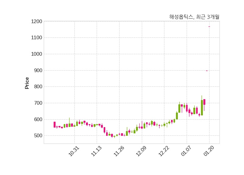 해성옵틱스는 특별관계자 안광호의 지분율이 5.96%에서 7.13%로 변동했다고 20일 공시했다. 한편, 해성옵틱스의 10시 21분 현재주가는 1,167원으로 직전 거래일 대비 269원(+29.96%) 상승이며, 거래량은 2,617,663주이다.
