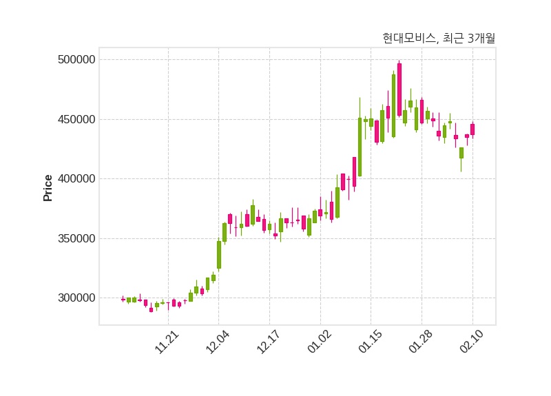 한편, 현대모비스는 장 마감 이후 해당 기업공시를 발표했으며 오늘 종가가 437,000원, 거래량은 216,733주로, 직전 거래일 대비 2,000원(+0.46%) 상승했다.