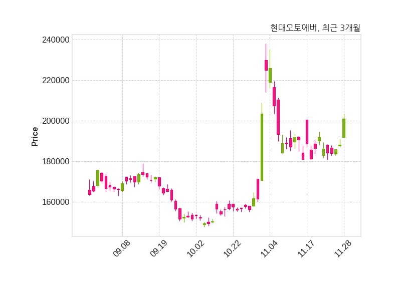 한편, 현대오토에버의 09시 56분 현재주가는 201,000원으로 직전 거래일 대비 12,900원(+6.86%) 상승이며, 거래량은 121,361주이다.