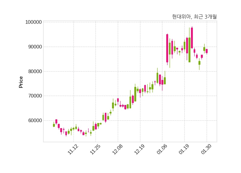 한편, 현대위아의 13시 58분 현재주가는 87,600원으로 직전 거래일 대비 2,200원(-2.45%) 하락이며, 거래량은 164,690주이다.