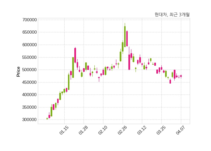 한편, 현대자동차는 장 마감 이후 해당 기업공시를 발표했으며 오늘 종가가 473,000원, 거래량은 676,745주로, 직전 거래일 대비 4,000원(+0.85%) 상승했다.