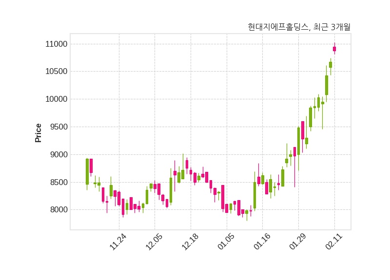 한편, 현대지에프홀딩스의 13시 28분 현재주가는 10,870원으로 직전 거래일 대비 200원(+1.87%) 상승이며, 거래량은 190,460주이다.