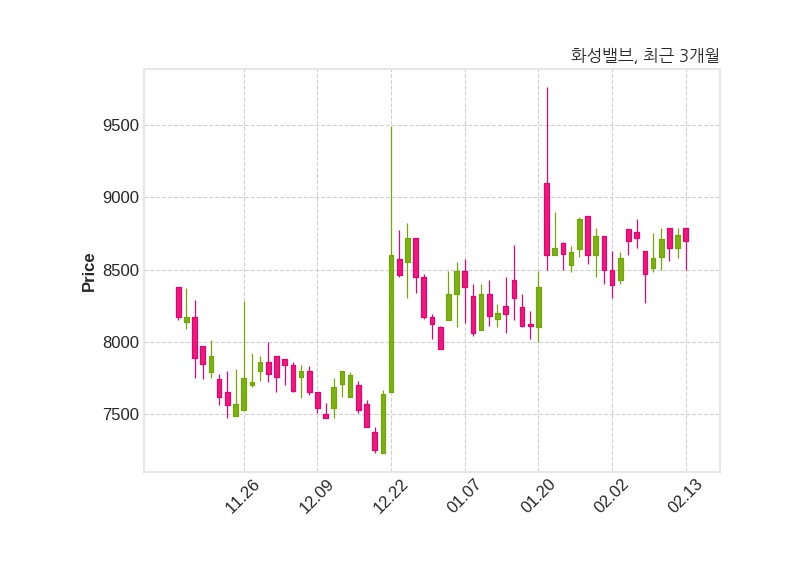 한편, 화성밸브는 장 마감 이후 해당 기업공시를 발표했으며 오늘 종가가 8,700원, 거래량은 52,098주로, 직전 거래일 대비 40원(-0.46%) 하락했다.