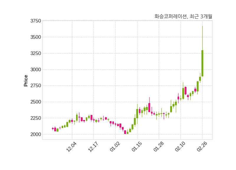 한편, 화승코퍼레이션은 장 마감 이후 해당 기업공시를 발표했으며 오늘 종가가 3,295원, 거래량은 4,783,441주로, 직전 거래일 대비 410원(+14.21%) 상승했다.