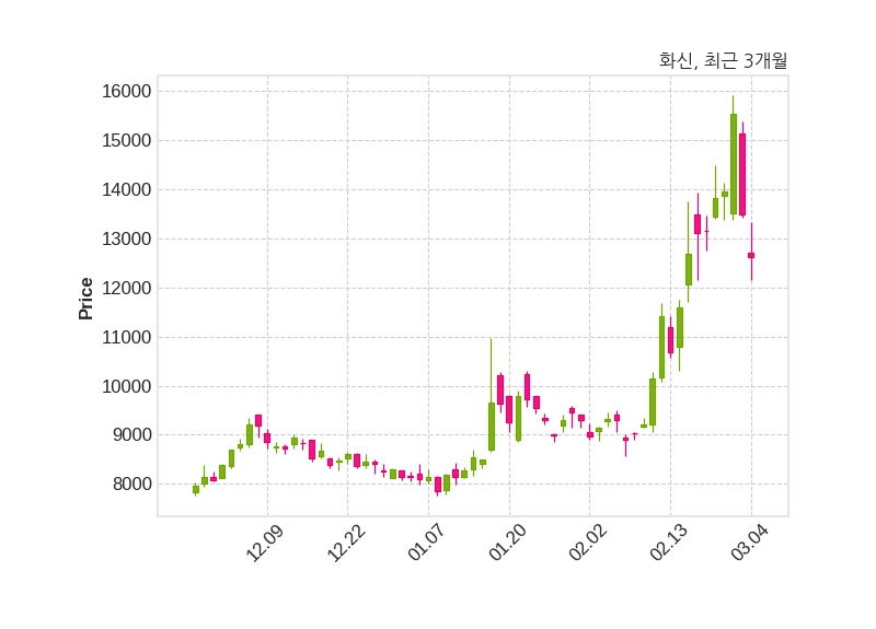 한편, 화신의 09시 51분 현재주가는 12,610원으로 직전 거래일 대비 870원(-6.45%) 하락이며, 거래량은 314,646주이다.