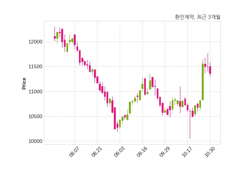 한편, 환인제약의 15시 04분 현재주가는 11,360원으로 직전 거래일 대비 140원(-1.22%) 하락이며, 거래량은 44,404주이다.