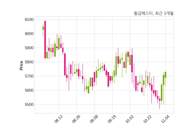 한편, 황금에스티는 장 마감 이후 해당 기업공시를 발표했으며 오늘 종가가 5,730원, 거래량은 36,173주로, 직전 거래일 대비 20원(+0.35%) 상승했다.