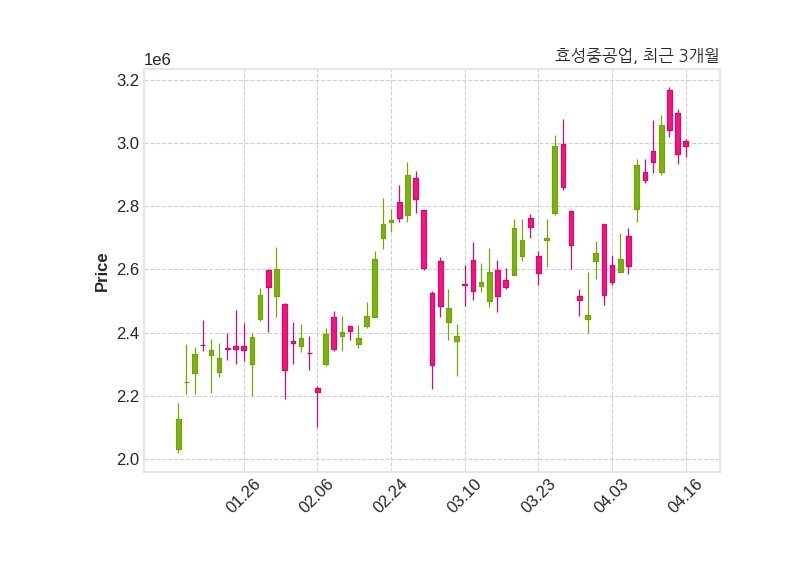 한편, 효성중공업은 장 마감 이후 해당 기업공시를 발표했으며 오늘 종가가 2,990,000원, 거래량은 30,445주로, 직전 거래일 대비 25,000원(+0.84%) 상승했다.