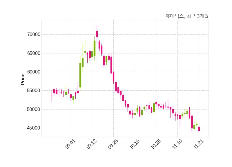 휴메딕스는 특별관계자 휴온스글로벌의 지분율이 37.45%에서 37.5%로 변동했다고 21일 공시했다. 한편, 휴메딕스는 장 마감 이후 해당 기업공시를 발표했으며 오늘 종가가 44,300원, 거래량은 78,951주로, 직전 거래일 대비 1,700원(-3.7%) 하락했다.