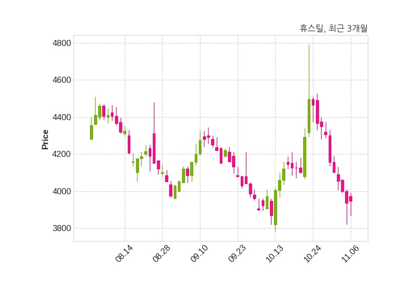 한편, 휴스틸의 14시 13분 현재주가는 3,945원으로 직전 거래일 대비 10원(+0.25%) 상승이며, 거래량은 143,560주이다.