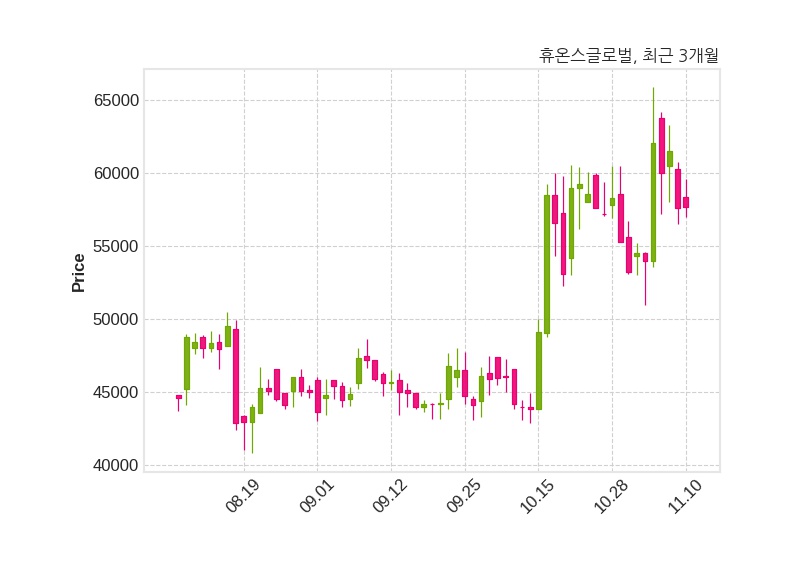 한편, 휴온스글로벌은 장 마감 이후 해당 기업공시를 발표했으며 오늘 종가가 57,700원, 거래량은 41,745주로, 직전 거래일 대비 100원(+0.17%) 상승했다.