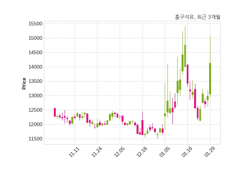 한편, 흥구석유는 장 마감 이후 해당 기업공시를 발표했으며 오늘 종가가 14,130원, 거래량은 9,297,733주로, 직전 거래일 대비 1,150원(+8.86%) 상승했다.