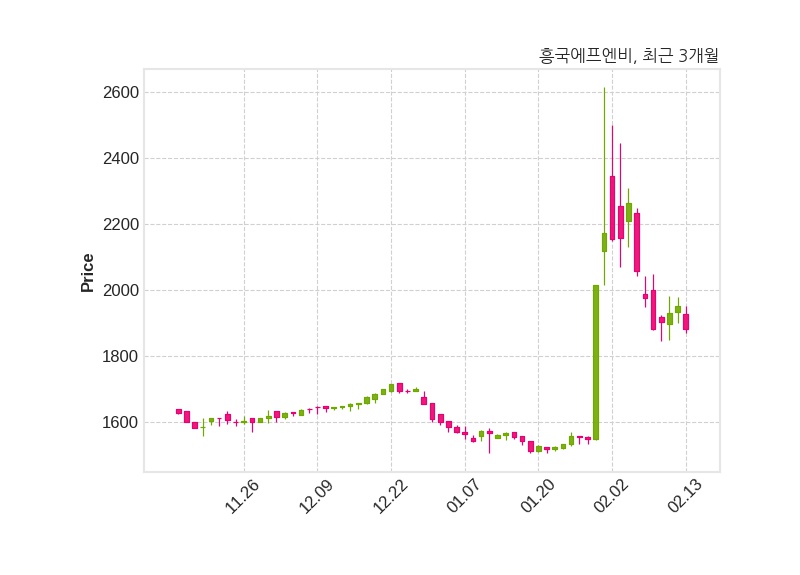 한편, 흥국에프엔비는 장 마감 이후 해당 기업공시를 발표했으며 오늘 종가가 1,882원, 거래량은 333,859주로, 직전 거래일 대비 71원(-3.64%) 하락했다.