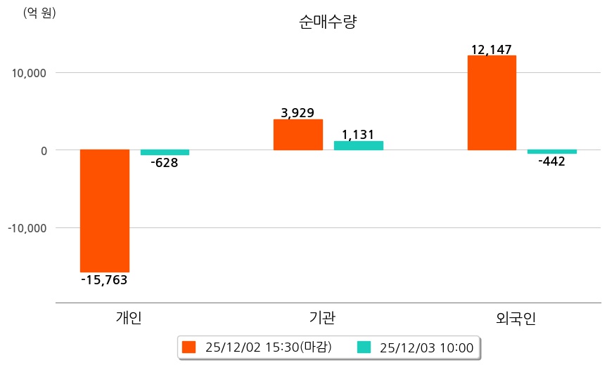 투자자별 동향을 살펴보면 기관은 1,131억 원 순매수했으며, 외국인은 442억 원 순매도했다. 개인은 628억 원 순매도했다.