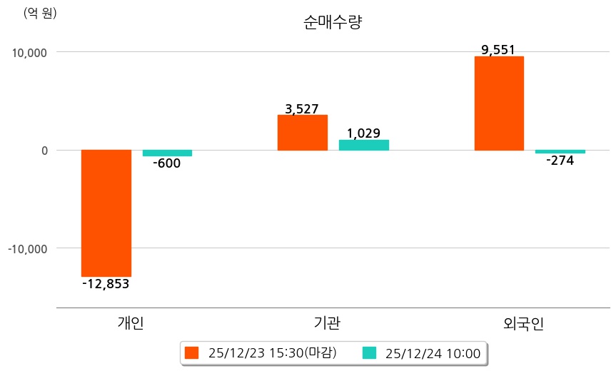 투자자별 동향을 살펴보면 기관은 1,029억 원 순매수했으며, 외국인은 274억 원 순매도했다. 개인은 600억 원 순매도했다.