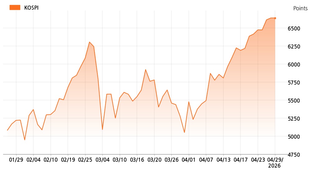 29일 오전 10시 코스피(6,641.68p, 0.66p, +0.01%)는 기관 매수가 늘면서 상승세를 보이고 있다.