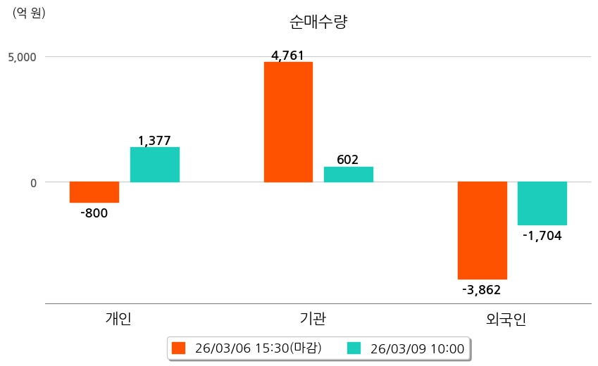 투자자별 동향을 살펴보면 기관은 602억 원 순매수했으며, 외국인은 1,704억 원 순매도했다. 개인은 1,377억 원 순매수했다.