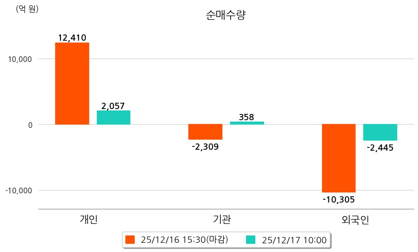 투자자별 동향을 살펴보면 기관은 358억 원 순매수했으며, 외국인은 2,445억 원 순매도했다. 개인은 2,057억 원 순매수했다.