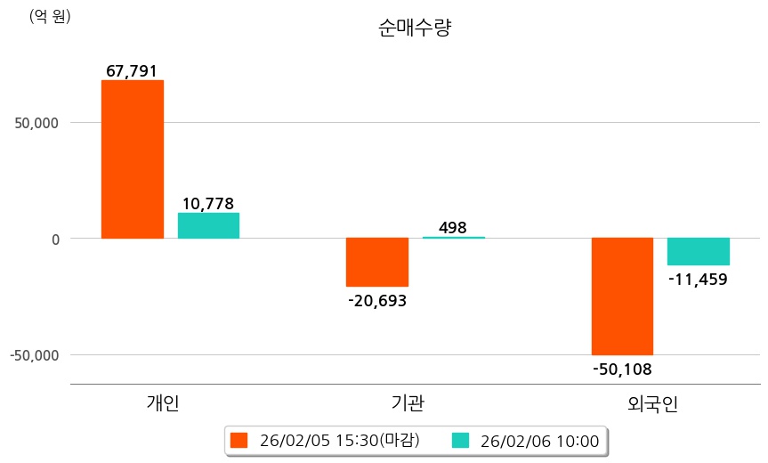 투자자별 동향을 살펴보면 기관은 498억 원 순매수했으며, 외국인은 11,459억 원 순매도했다. 개인은 10,778억 원 순매수했다.