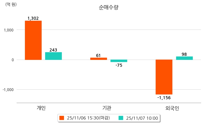 투자자별 동향을 살펴보면 기관은 75억 원 순매도했으며, 외국인은 98억 원 순매수했다. 개인은 243억 원 순매수했다.