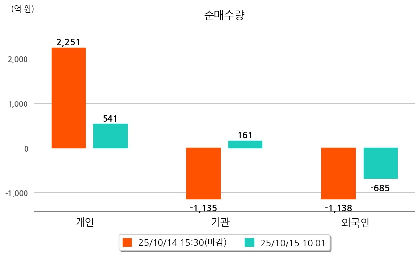 투자자별 동향을 살펴보면 기관은 161억 원 순매수했으며, 외국인은 685억 원 순매도했다. 개인은 541억 원 순매수했다.