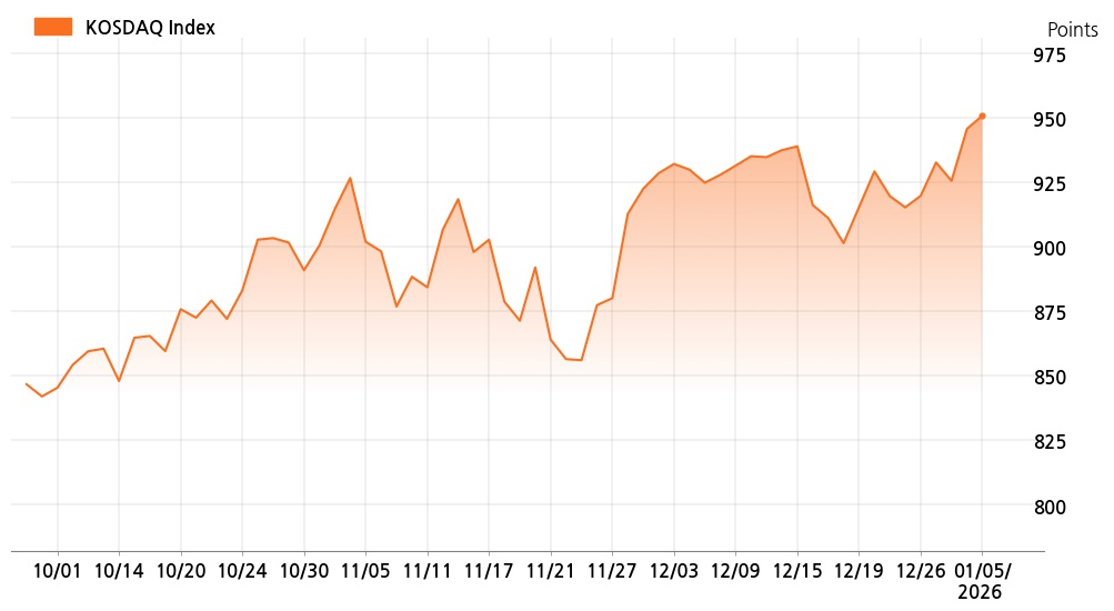 5일 오전 10시 코스닥(950.70p, 5.13p, +0.54%)는 기관 매수가 늘면서 상승세를 보이고 있다.