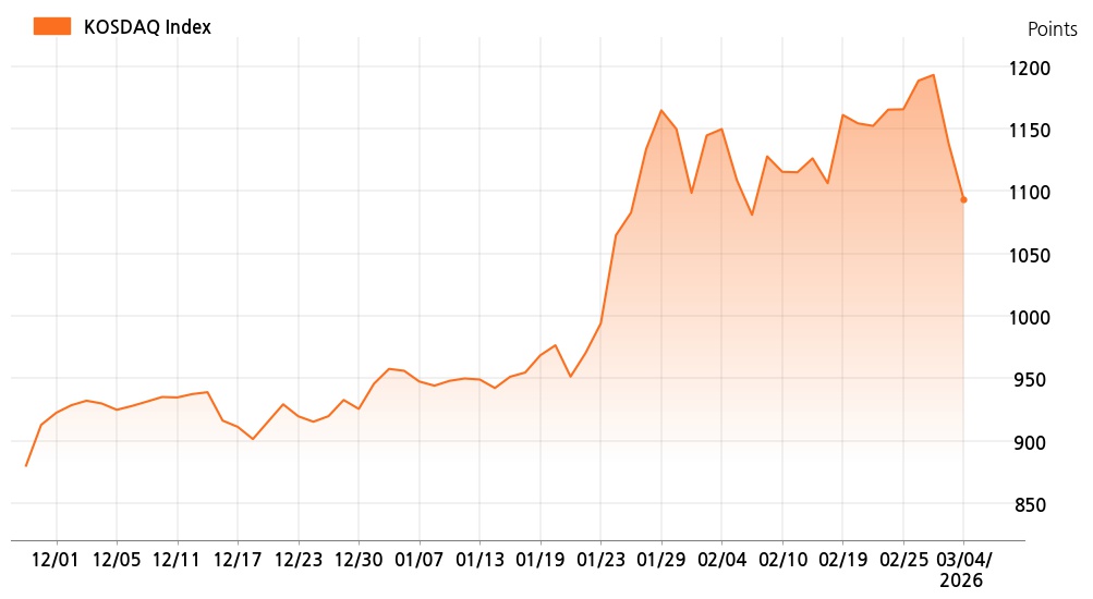 4일 오전 10시 코스닥(1,093.00p, 44.70p, -3.93%)는 개인 매도가 늘면서 하락세를 보이고 있다.