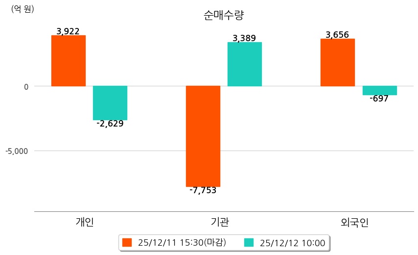 투자자별 동향을 살펴보면 기관은 3,389억 원 순매수했으며, 외국인은 697억 원 순매도했다. 개인은 2,629억 원 순매도했다.