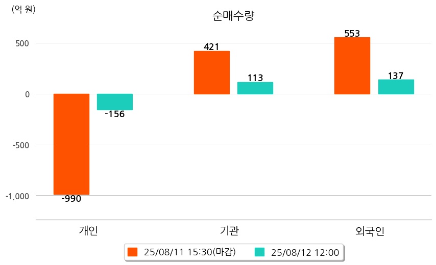 투자자별 동향을 살펴보면 기관은 113억 원 순매수했으며, 외국인은 137억 원 순매수했다. 개인은 156억 원 순매도했다.