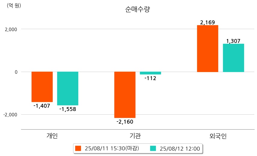 투자자별 동향을 살펴보면 기관은 112억 원 순매도했으며, 외국인은 1,307억 원 순매수했다. 개인은 1,558억 원 순매도했다.