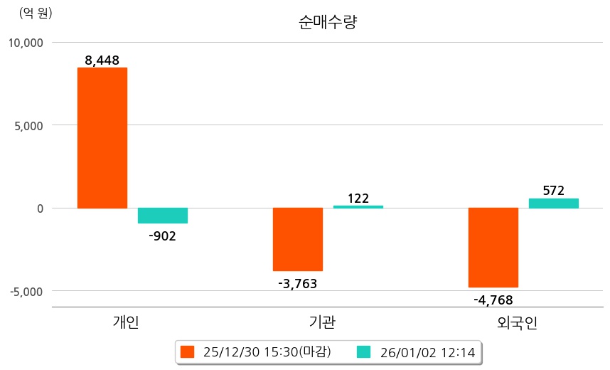 투자자별 동향을 살펴보면 기관은 122억 원 순매수했으며, 외국인은 572억 원 순매수했다. 개인은 902억 원 순매도했다.