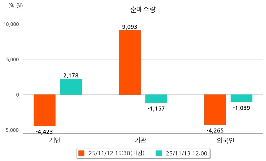 투자자별 동향을 살펴보면 기관은 1,157억 원 순매도했으며, 외국인은 1,039억 원 순매도했다. 개인은 2,178억 원 순매수했다.