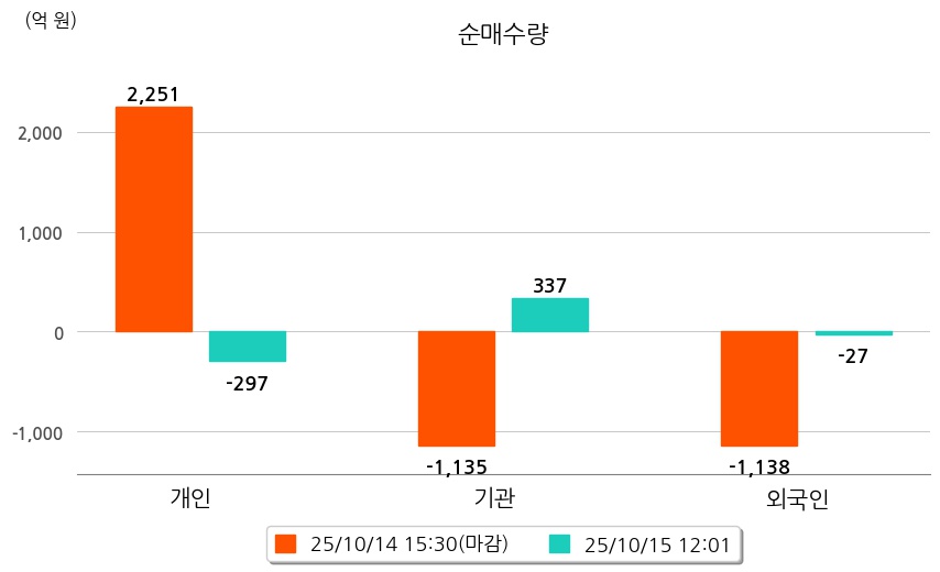 투자자별 동향을 살펴보면 기관은 337억 원 순매수했으며, 외국인은 27억 원 순매도했다. 개인은 297억 원 순매도했다.
