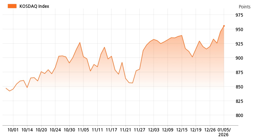 5일 정오 현재 코스닥(955.51p, 9.94p, +1.05%)는 기관 매수가 늘면서 상승세를 보이고 있다.